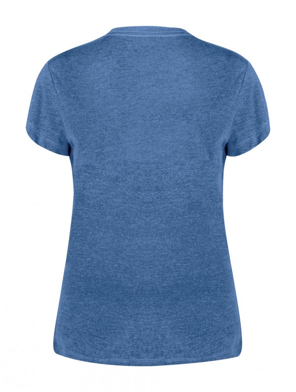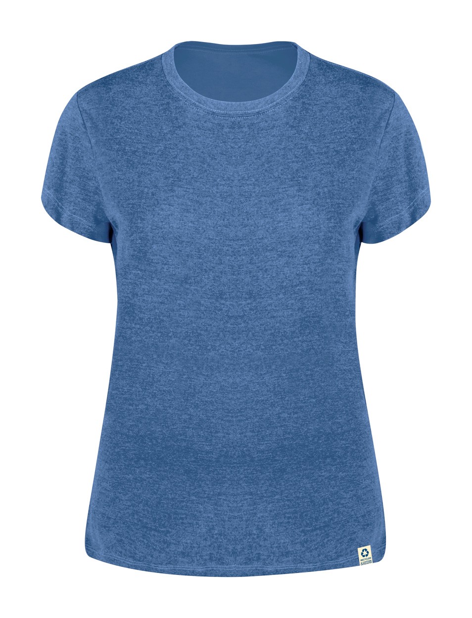 Tricou de damă, cu gât rotund, din 60% bumbac reciclat și 40% țesătură din poliester RPET, 150 g/m2.