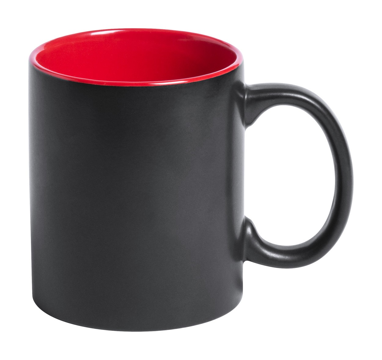 Cană ceramică neagră cu interior colorat, 350 ml. Cu suprafață specială pentru gravură. În cutie de cadou.