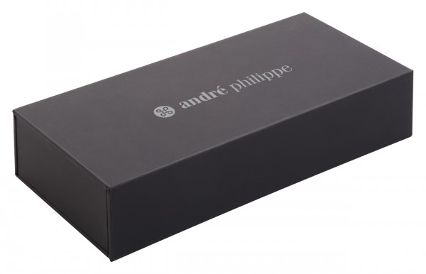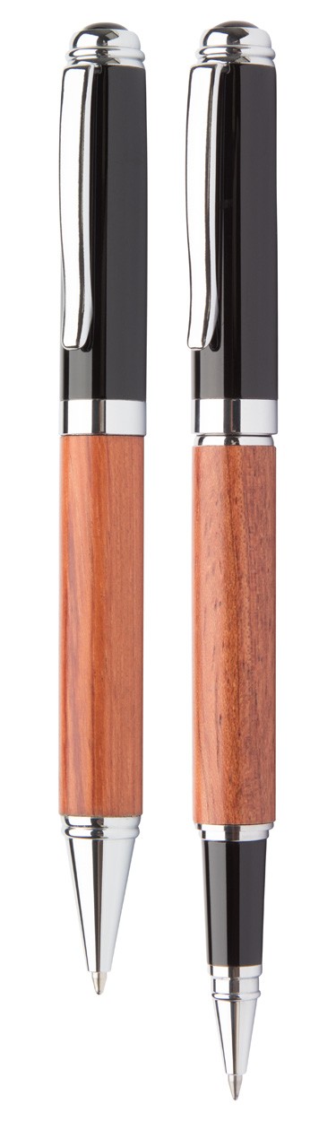 Pix și roller metalic elegant, cu finisaj din lemn de trandafir. În cutie neagră, mină albastră. Marca André Philippe.