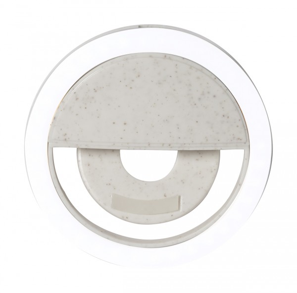 Inel pentru selfie, din plastic ecologic din paie de grâu, cu 36 LED-uri, pentru telefoane mobile. Cu 3 niveluri de luminozitate reglabile și baterie reîncărcabilă încorporată. Inclusiv cablu de încărcare USB.