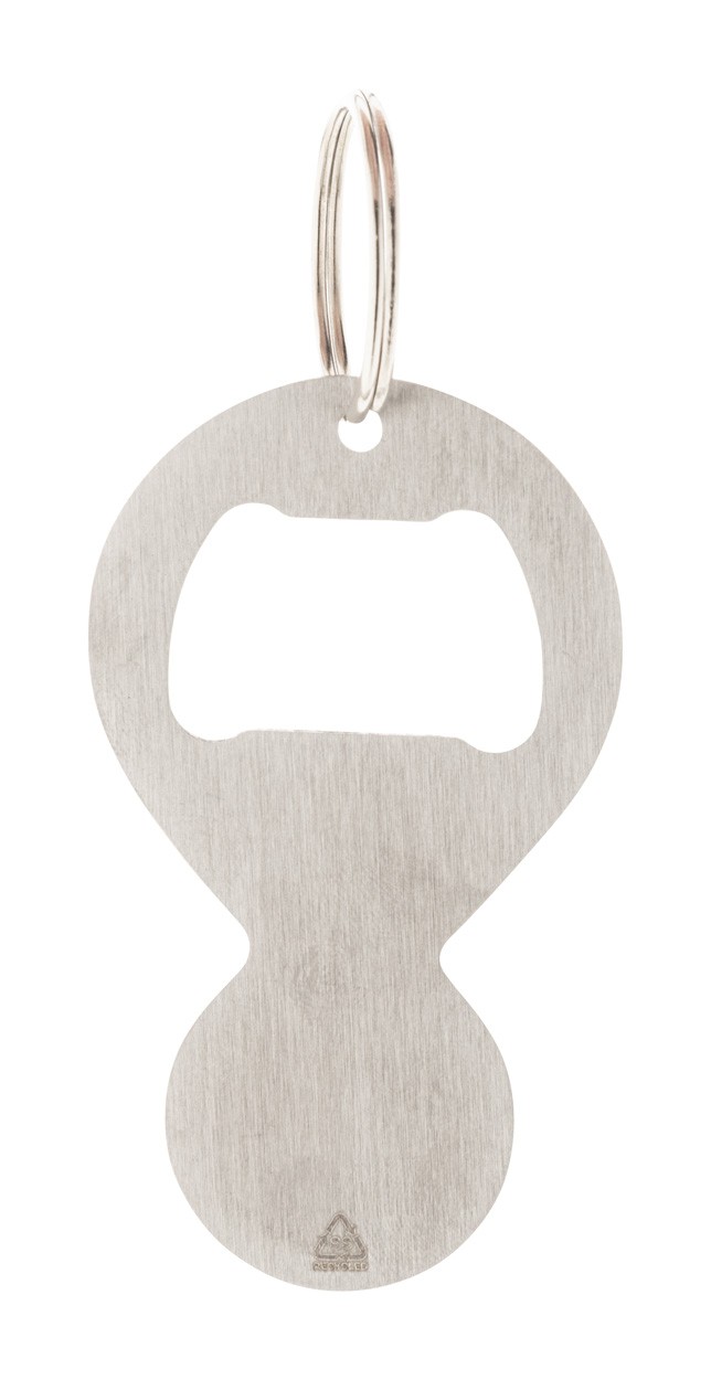 Breloc din oțel inoxidabil reciclat, cu deschizător de sticle și monedă cărucior pentru cumpărături.
