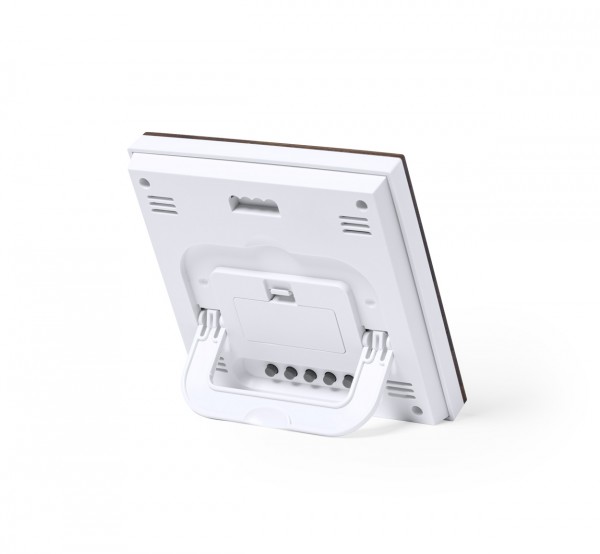 Stație meteo și ceas digital cu panou frontal din bambus. Functii: Ceas cu alarma, calendar, termometru, afisare umiditate si memorie trend de temperatura. Funcționează cu 2 baterii AAA (fără baterie).