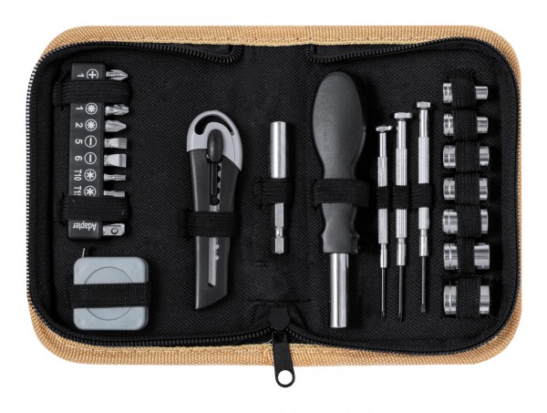 Set de scule, 24 buc, în carcasă din plută naturală.