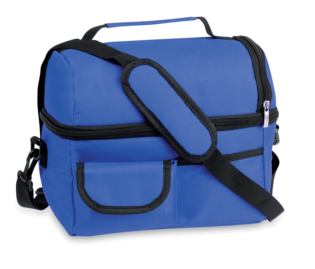 Geantă termoizolantă de umăr, din PVC, compartimente cu fermoar, din poliester 600D.