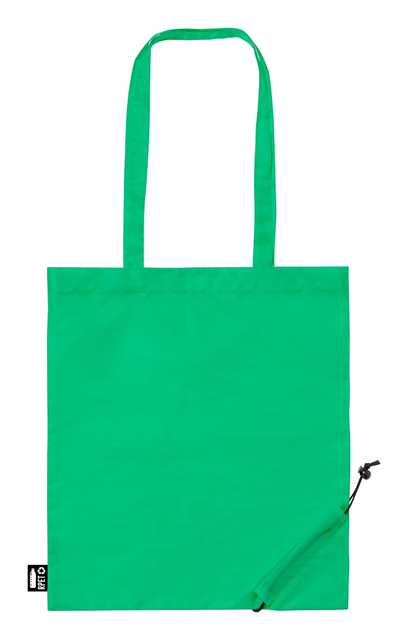 Sacoșă de cumpărături, pliabilă, din RPET, cu mânere lungi. Poliester 190T RPET, cu etichetă distinctivă RPET.