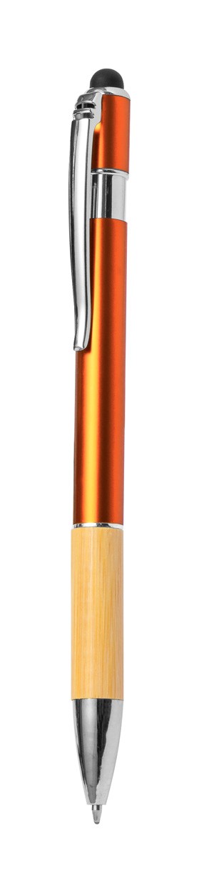 Pix din aluminiu, tactil, cu mâner din bambus, detalii metalice și mină albastră.