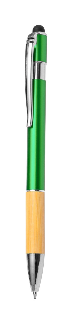 Pix din aluminiu, tactil, cu mâner din bambus, detalii metalice și mină albastră.