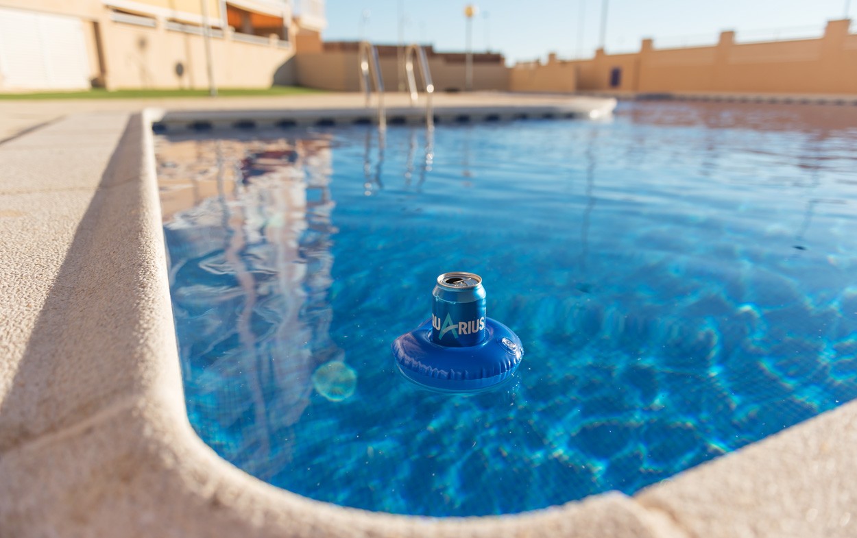 Suport gonflabil pentru sticlă/doză, în formă de gogoașă, din PVC. Dimensiune dezumflată Ø180 mm.