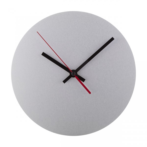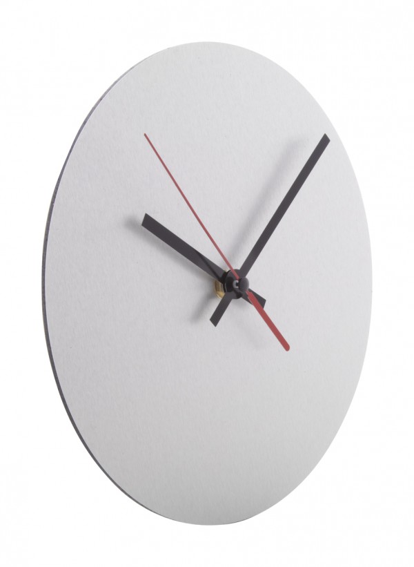 Ceas de perete rotund personalizat, din aluminiu periat. Functioneaza cu 1 baterie AA, se livreaza fara baterie. Pretul include imprimarea cu UV LED. Cantitate minima de comanda 25 buc.