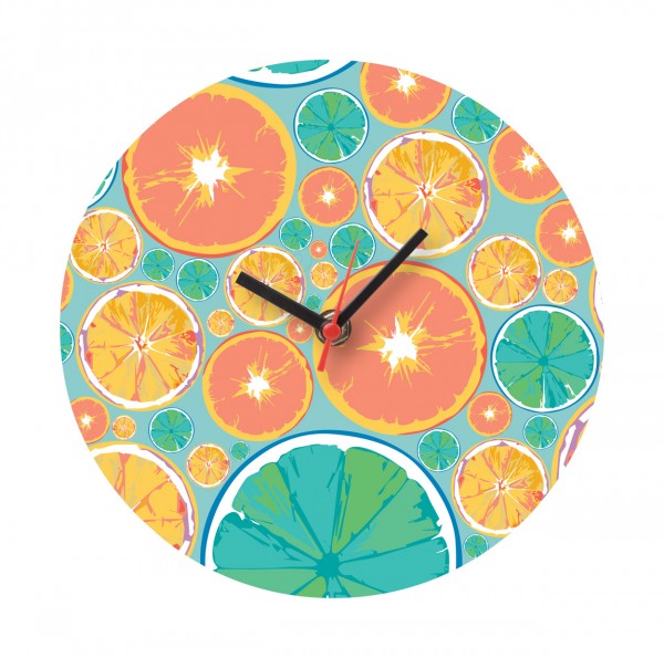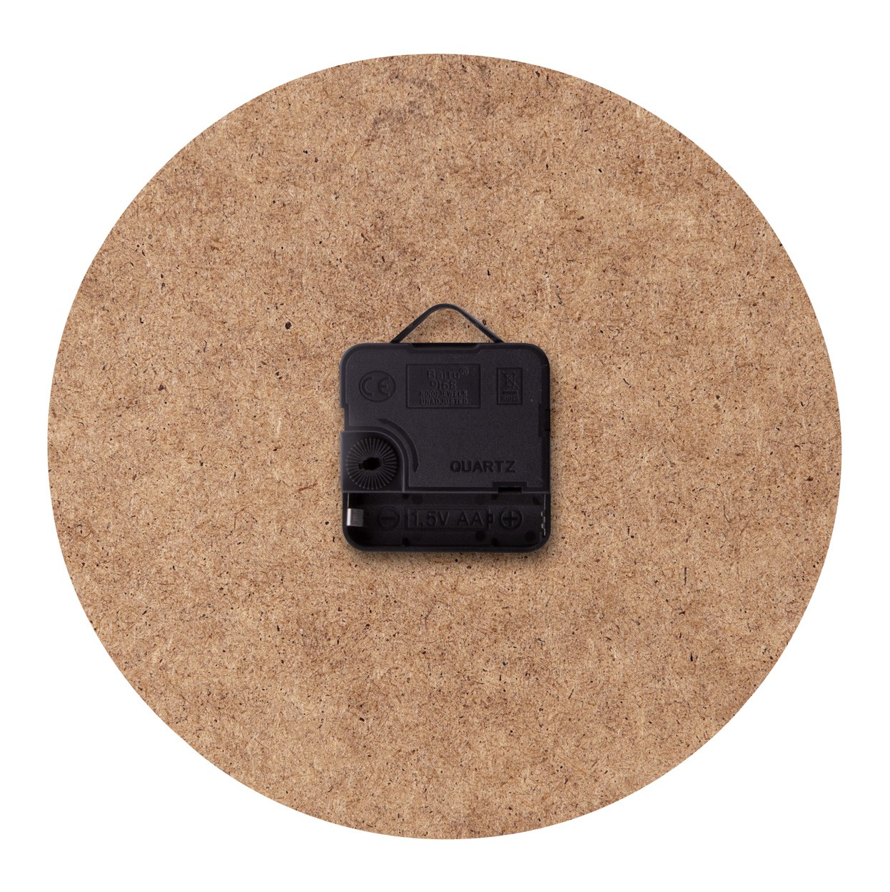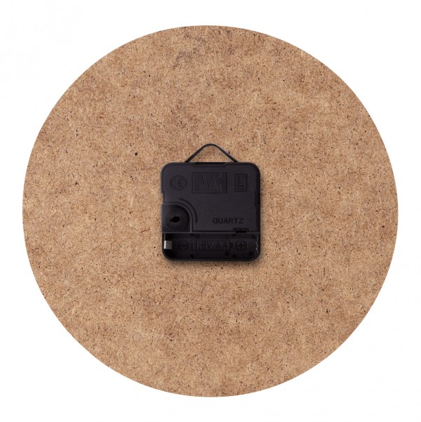Ceas de perete rotund cu design unic, din placaj HDF. Funcţionează cu 1 baterie AA. Se livrează fără baterii. MOQ: 50 buc.