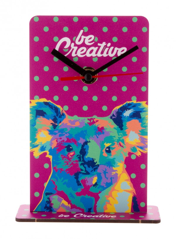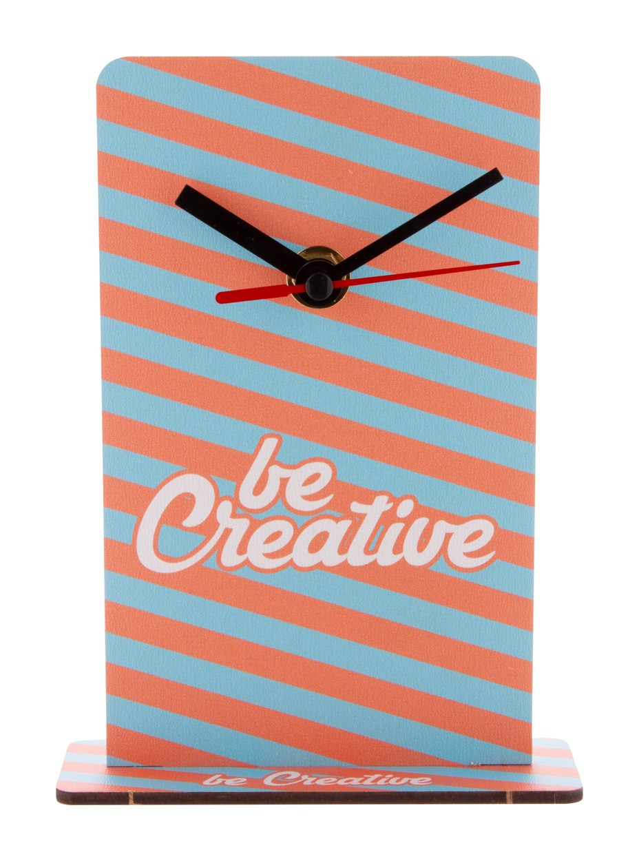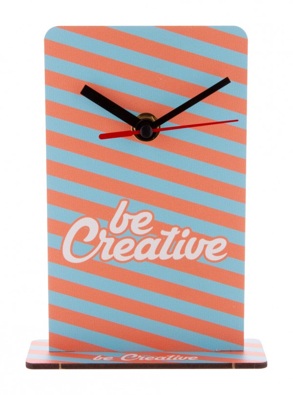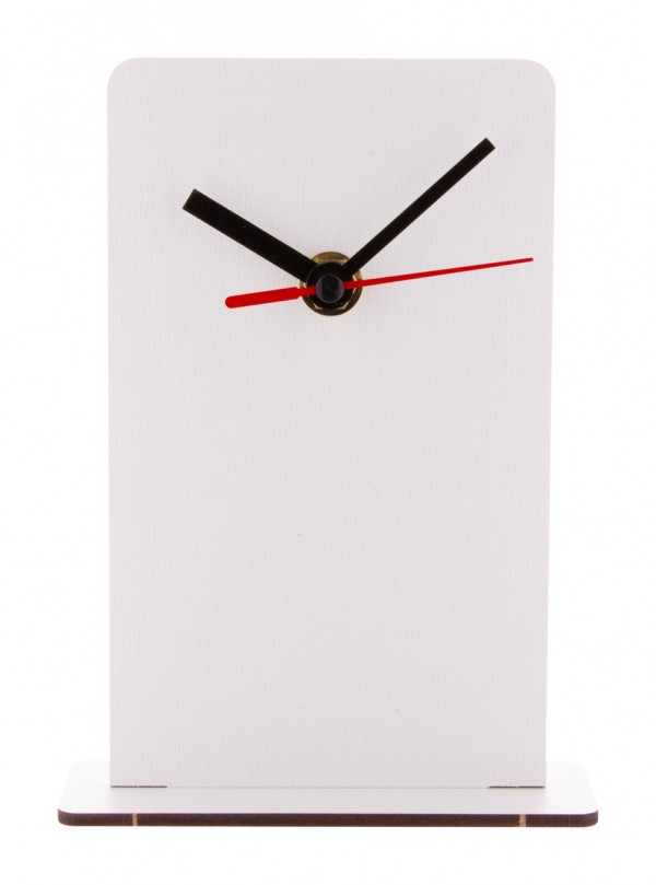 Ceas de masă, din lemn HDF, realizat la comandă, cu grafică personalizată. Funcționează cu 1 baterie AA, se livrează fără baterie. MOQ: 50 buc.