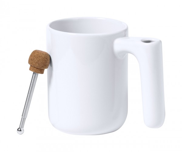 Cană din ceramică, cu mixer de băuturi, din oțel inoxidabil și plută naturală, 500 ml.