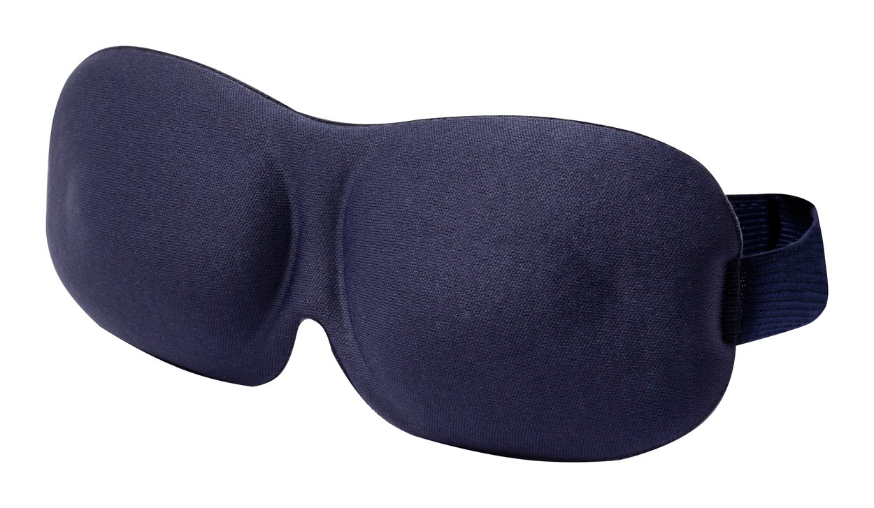 Mască pentru ochi, de călătorie, din poliester cu bandă elastică.