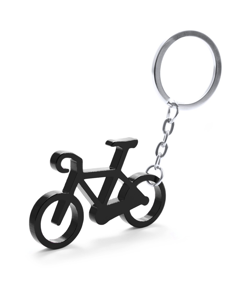 Breloc în formă de bicicletă, cu desfăcător, din aluminiu.
