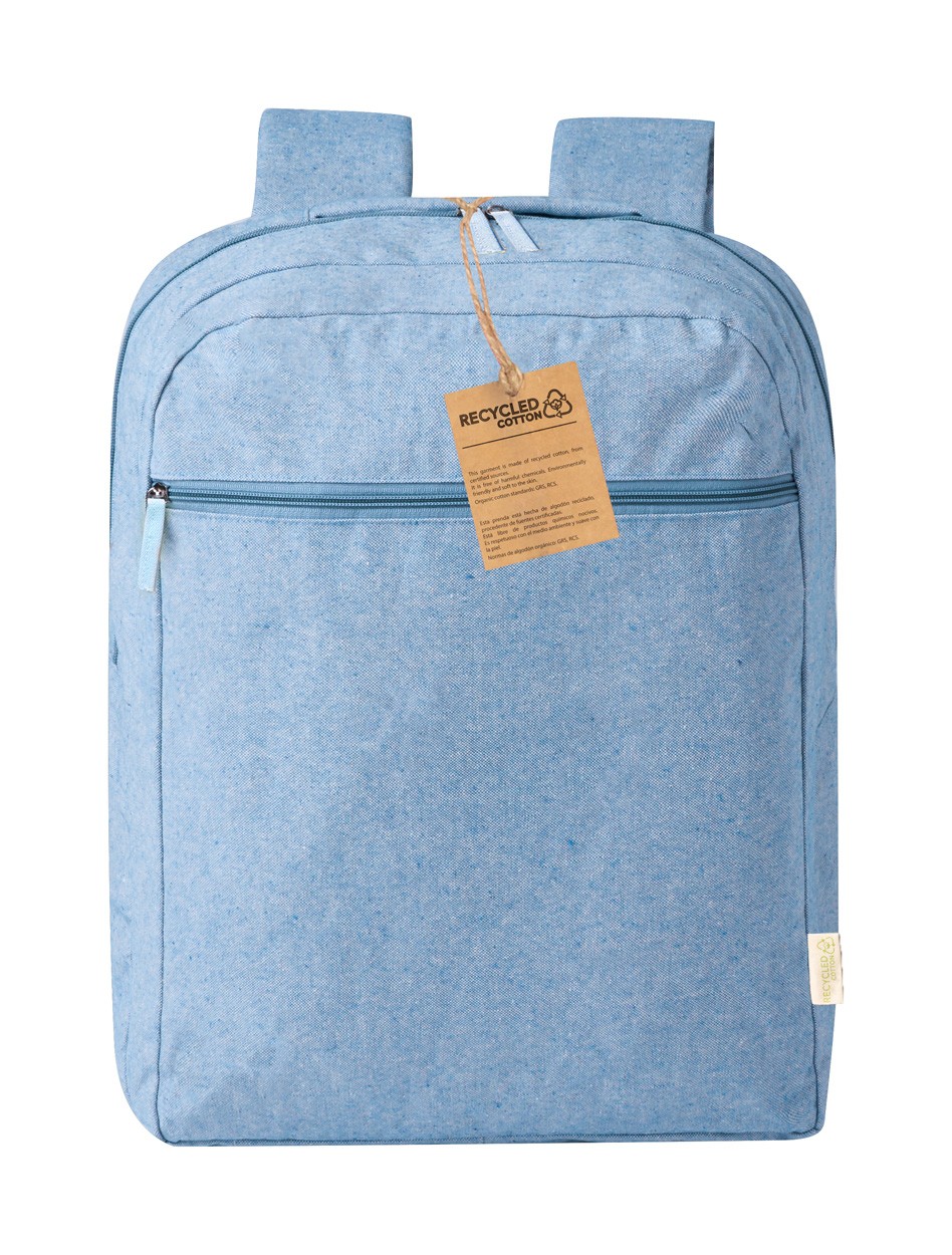 Recycled cotton backpack with zipped compartment, padded laptop (15") and tablet (10") compartment, front pocket and adjustable shoulder straps. With distinctive recycled cotton label. 100% recycled cotton, 300 g/m².
