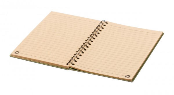 Caiet cu spirală, cu coperta tare, din hârtie reciclată, 80 de file dictando, dimensiune A5.