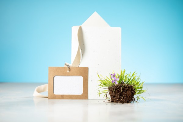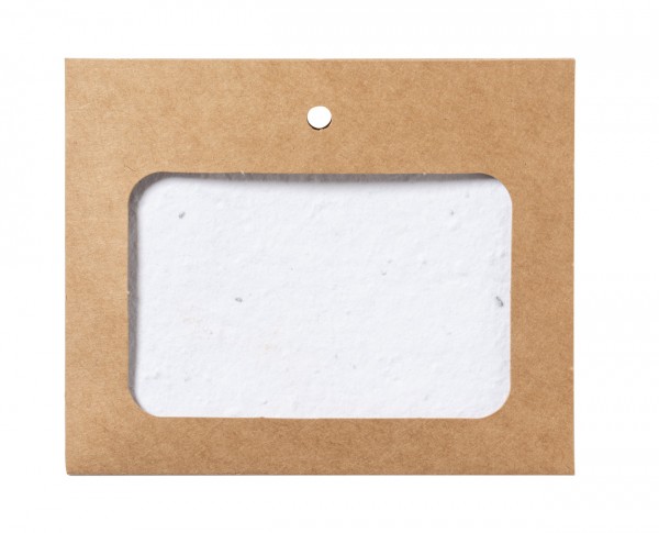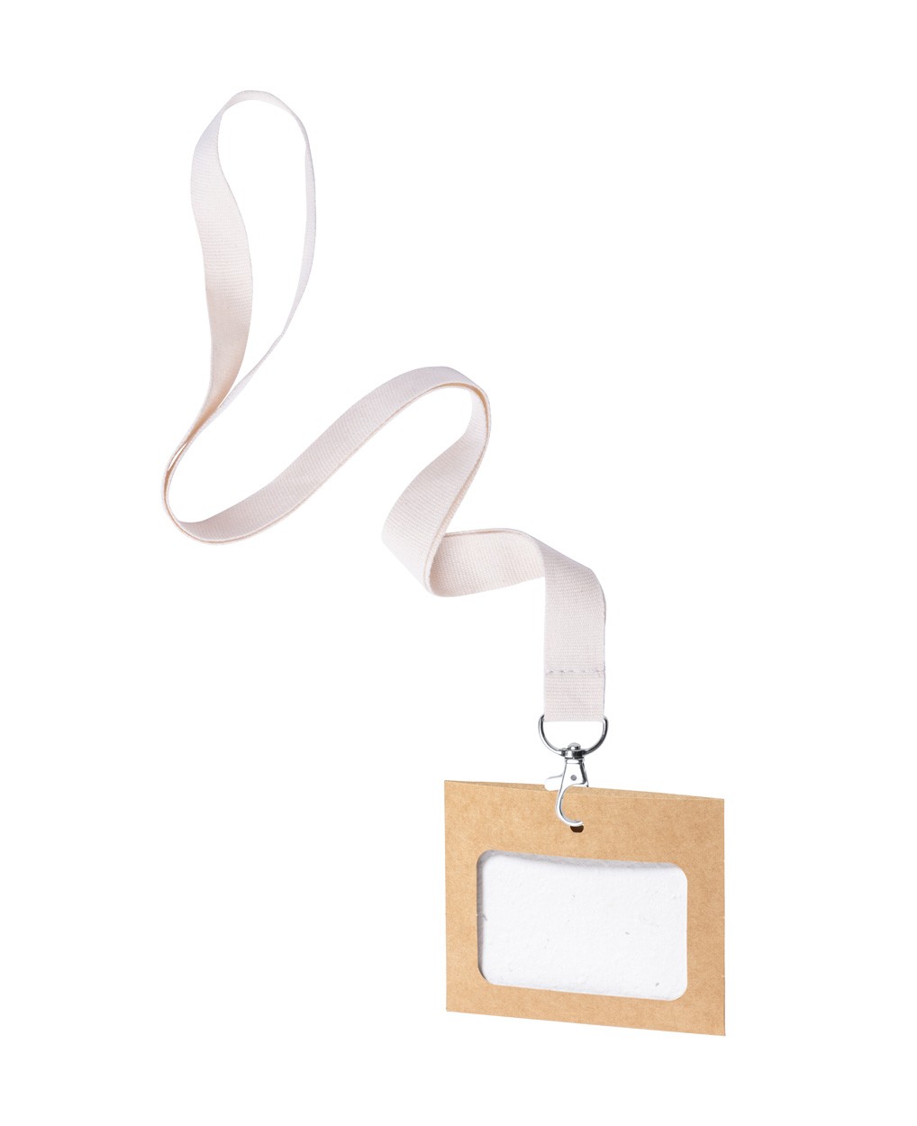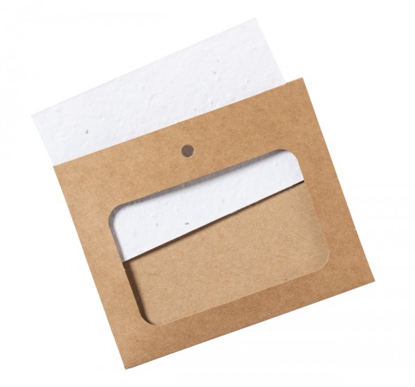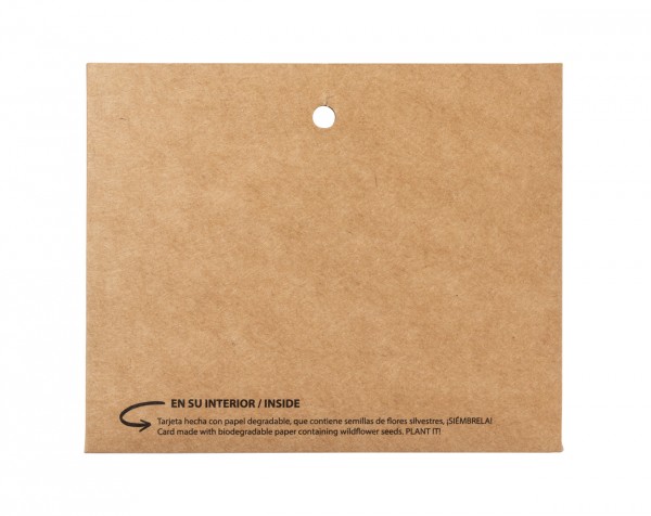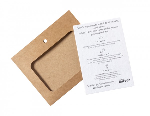 Suport de insignă din hârtie reciclată, pentru șnur, inclusiv card de hârtie pentru semințe. Cardul de hârtie pentru semințe conține semințe de flori sălbatice în culori asortate și instrucțiuni de plantare.