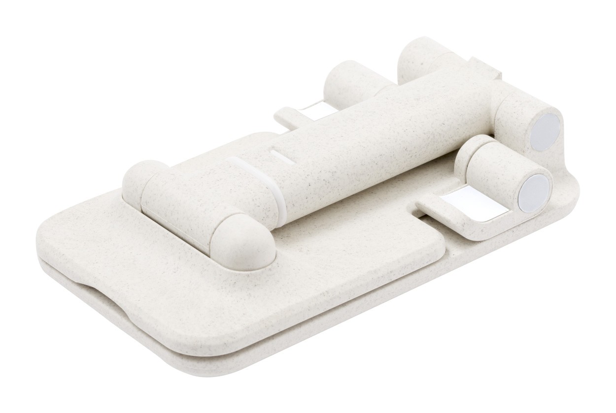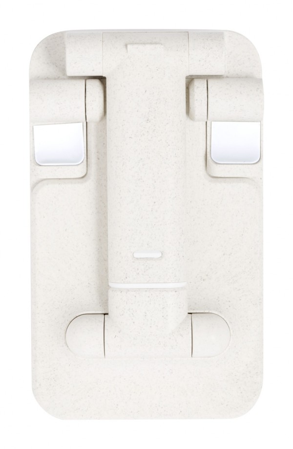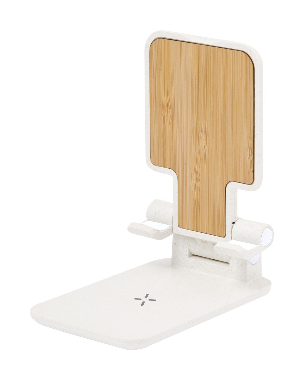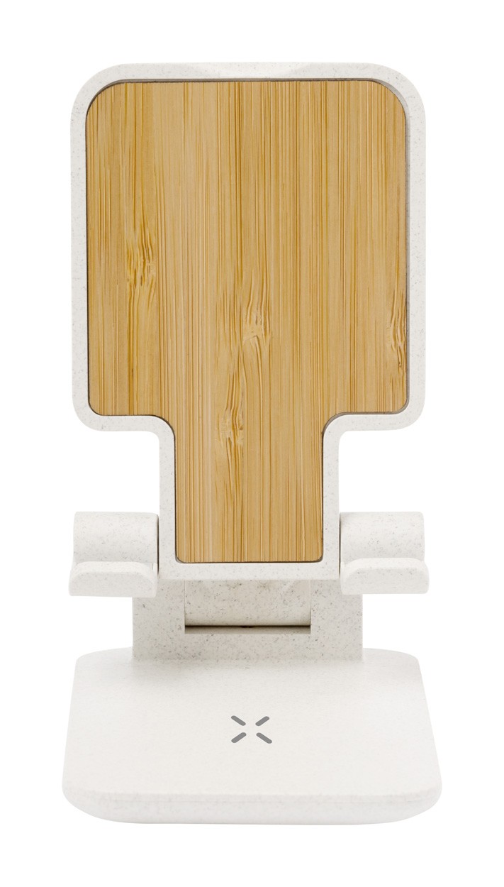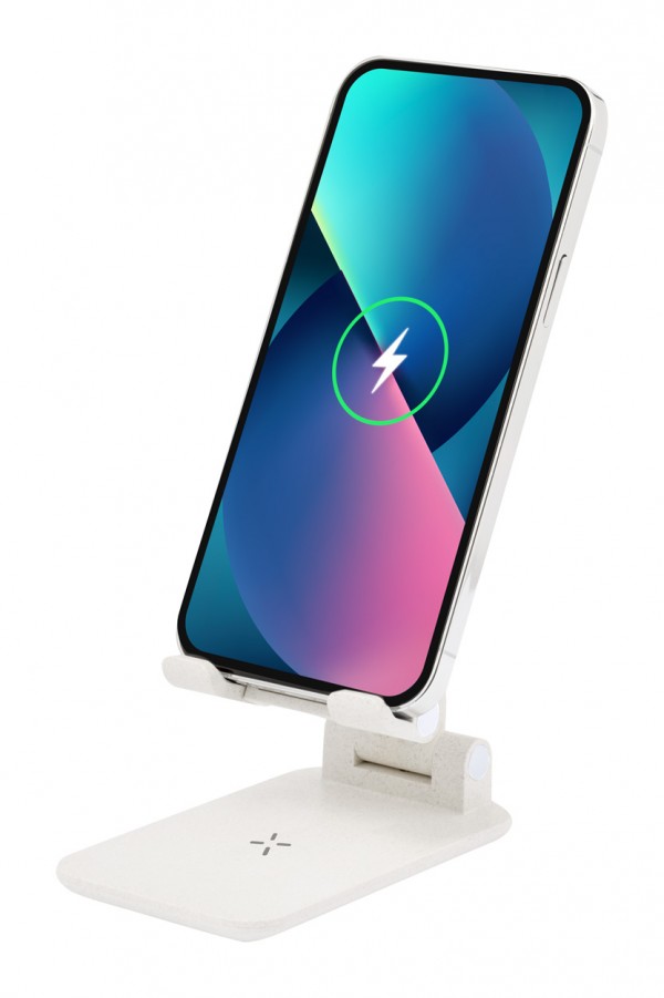 Suport telefon mobil de birou, pliabil, reglabil, din plastic din paie ecologice de grâu și bambus, cu încărcător rapid wireless încorporat (15W). Inclusiv cablu de încărcare USB.