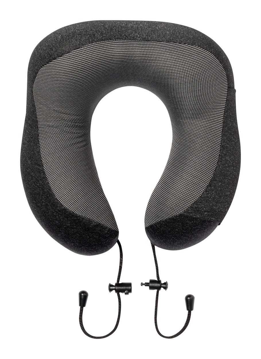 Pernă de călătorie ergnomică, căptușită cu spumă, în husă cu șnur din poliester RPET.