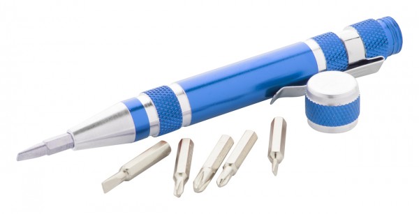 Șurubelniță din aluminiu cu 6 capete interschimbabile.