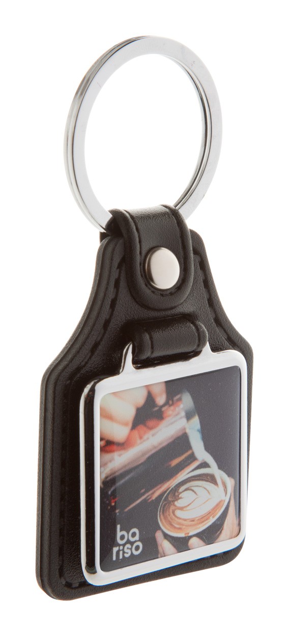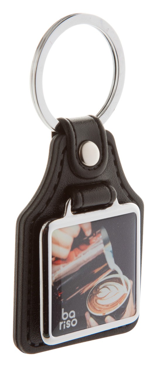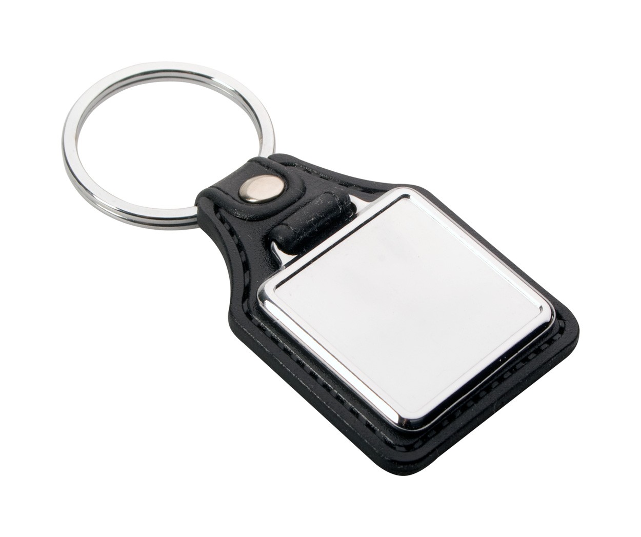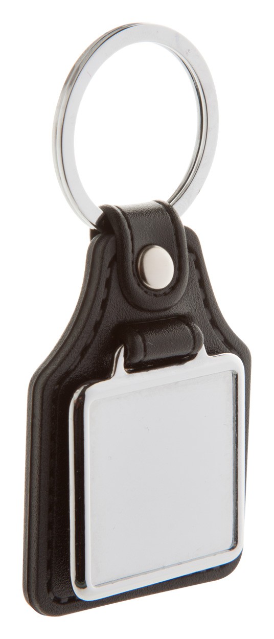 Breloc pătrat din înlocuitor piele, cu inel metalic.Răşină epoxidică în mijloc. Pretul include personalizarea cu răşină epoxidică. Cantitate minimă de comandă: 100 buc.