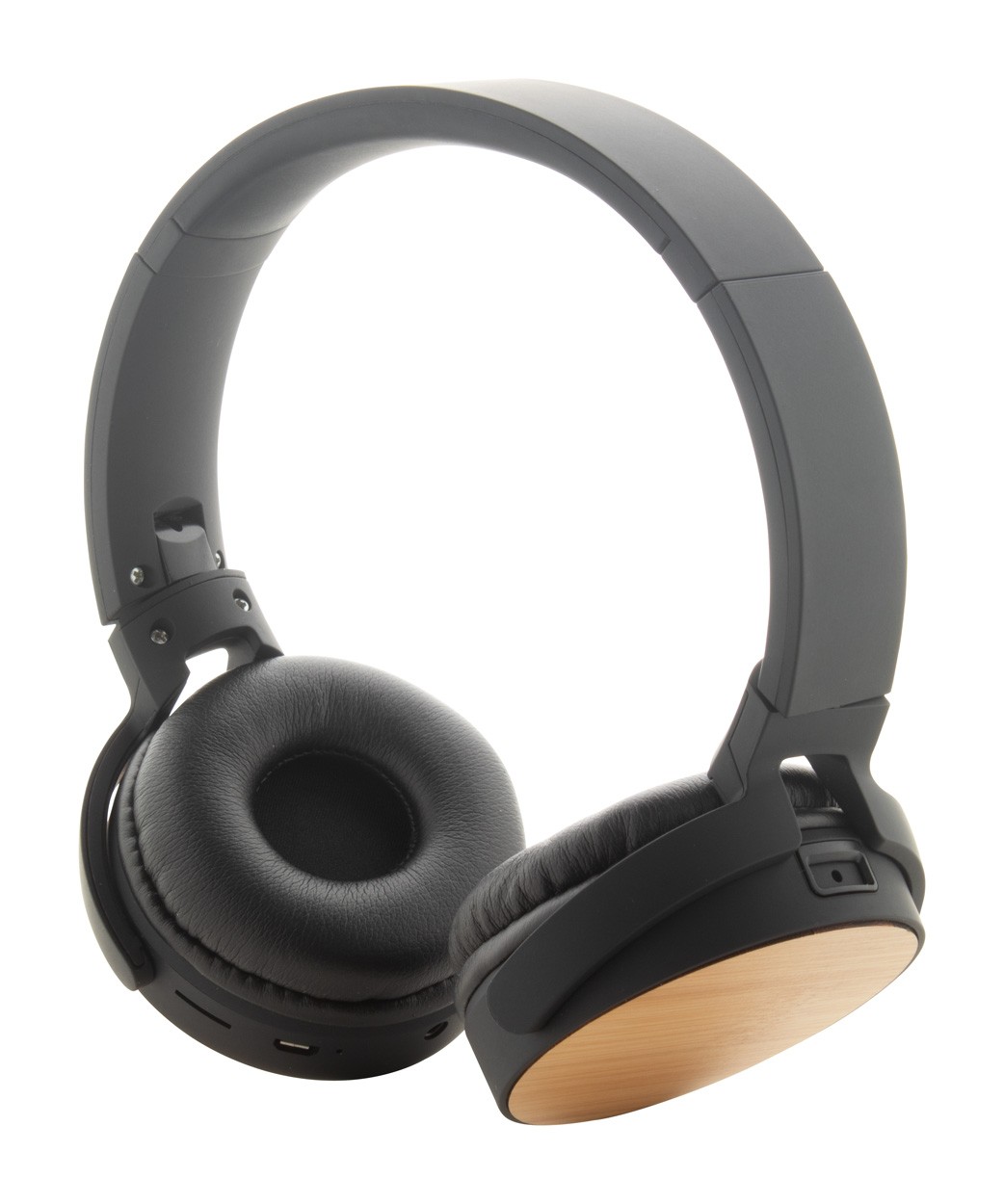 Căști bluetooth pliabile cu decor din bambus și baterie reîncărcabilă încorporată. Cu apel hands-free și funcții de redare micro SD MP3. Inclusiv jack audio de 3,5 mm și cabluri de încărcare USB.