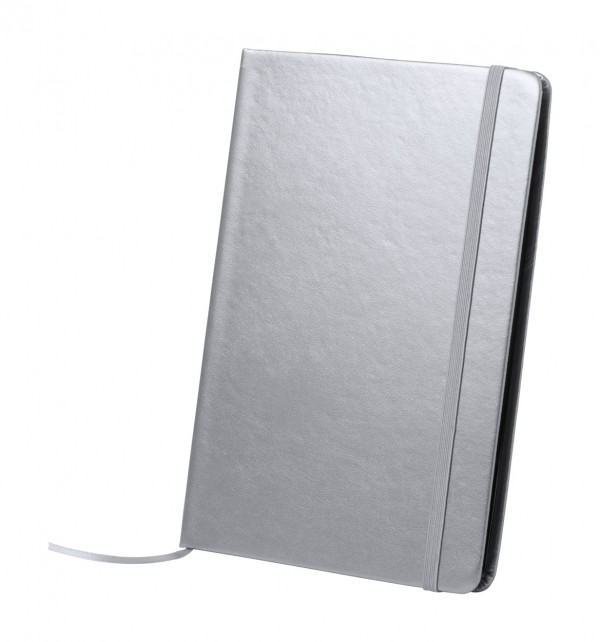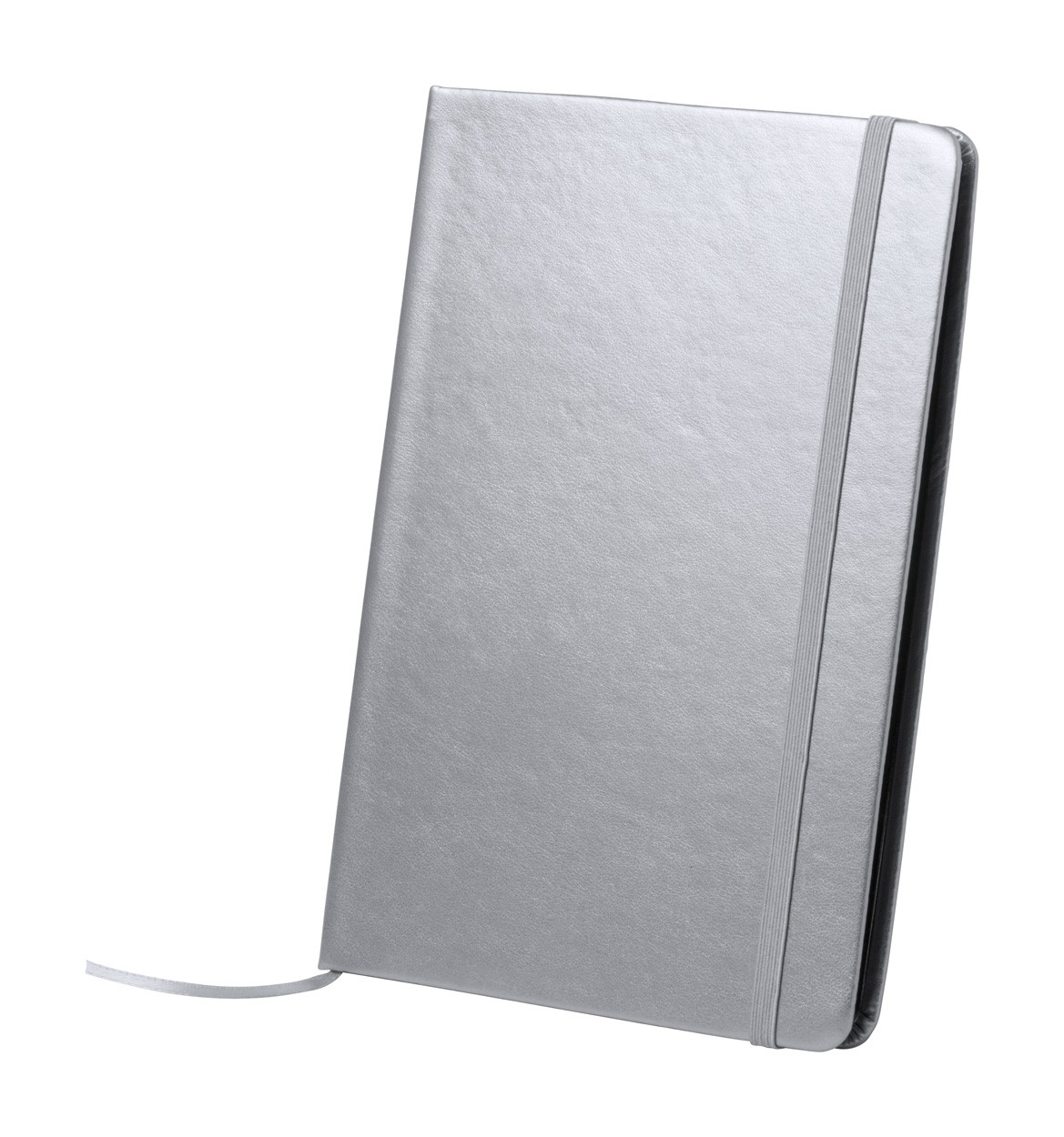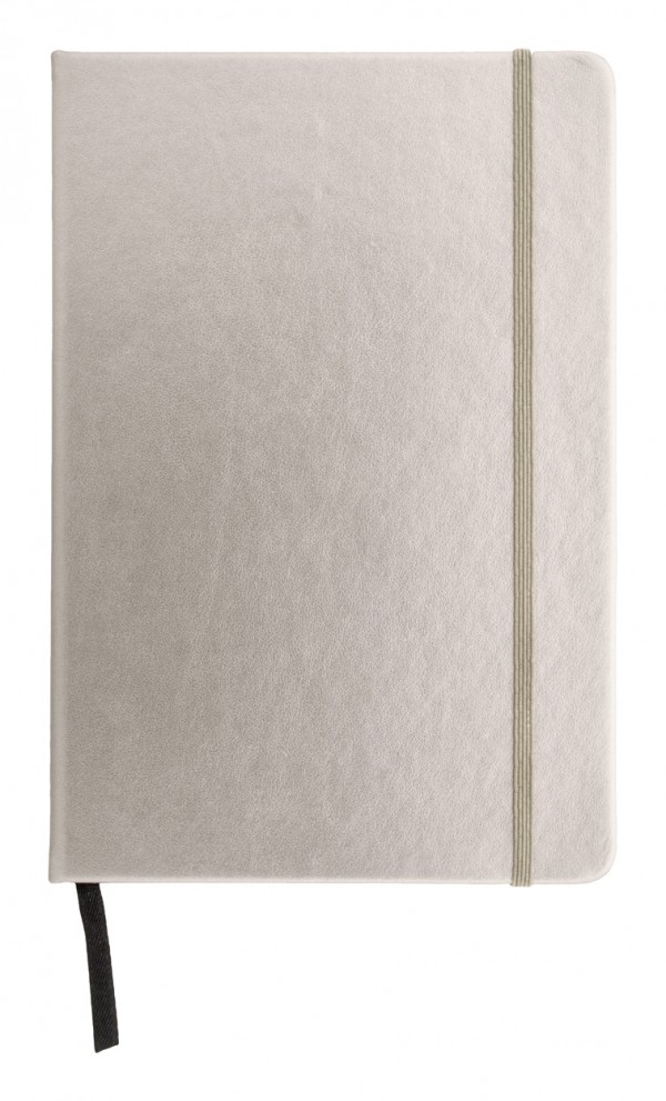 Carnețel cu copertă din înlocuitor piele metalizat, cu 80 file veline și curea de cauciuc, A5.