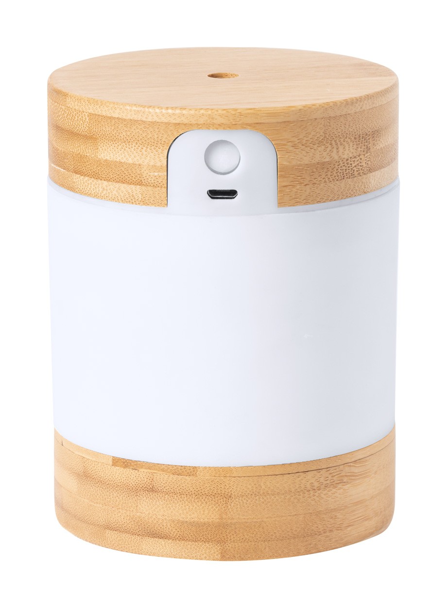 Umidificator de birou din bambus cu lumină LED. Inclusiv cablu de alimentare USB. Capacitate rezervor: 250 ml. În cutie de hârtie kraft.