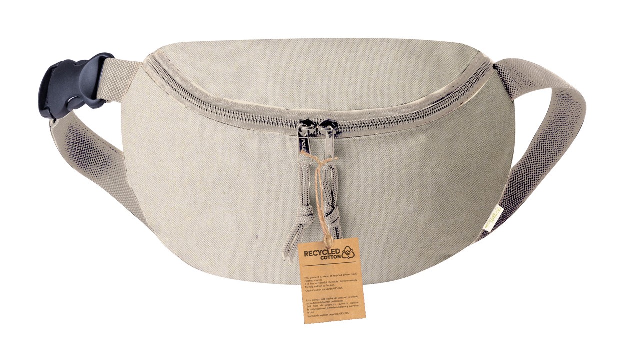 Recycled cotton waist bag with zipped compartment and adjustable strap. With distinctive recycled cotton label. 100% recycled cotton, 300 g/m².