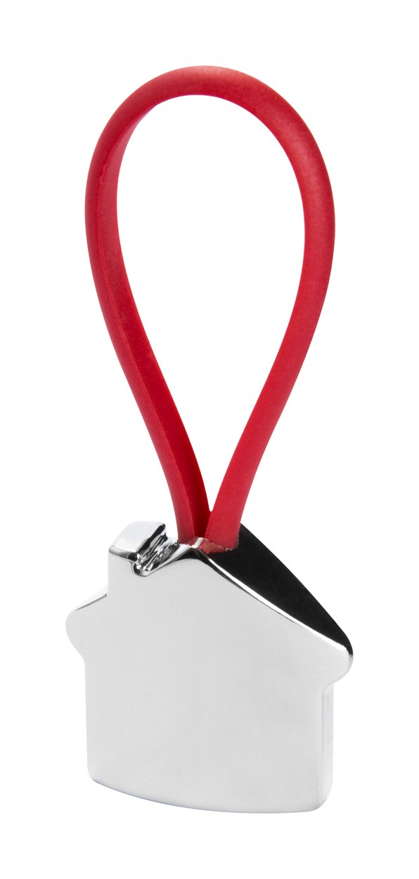 Breloc din aluminiu în formă de casă, cu cauciuc colorat.