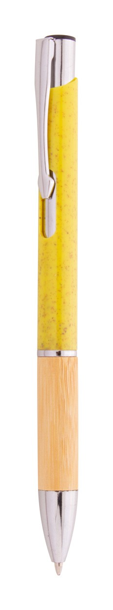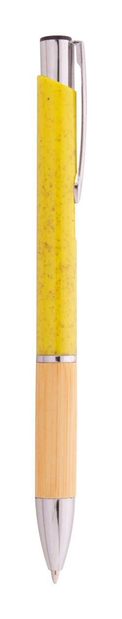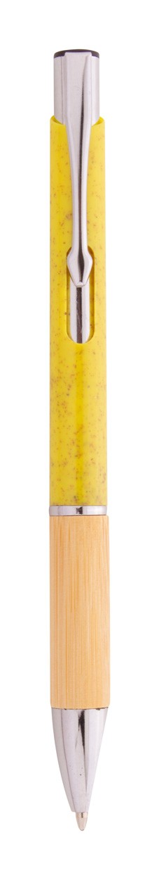 Pix ecologic, din plastic din paie de grâu, cu corp din bambus și părți metalice. Cu mină albastră.