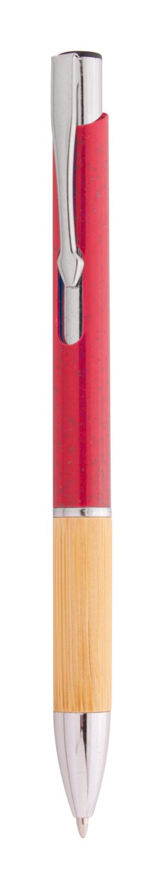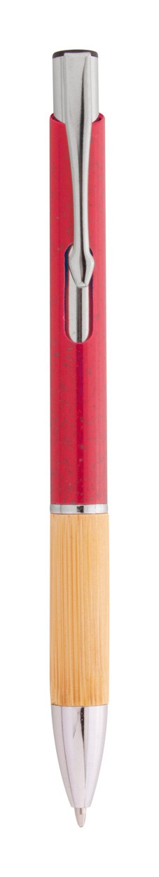 Pix ecologic, din plastic din paie de grâu, cu corp din bambus și părți metalice. Cu mină albastră.