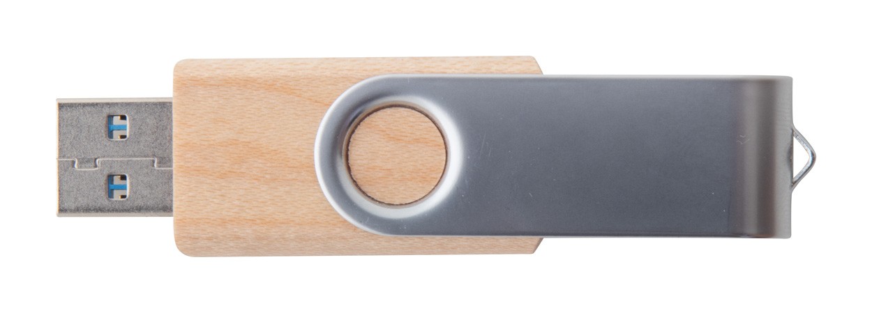 Unitate flash USB OTG, în carcasă din bambus și metal, cu memorie de 4/8/16/32 GB. Cu conexiuni USB și USB-C. În cutie de hârtie kraft. USB 2.0.