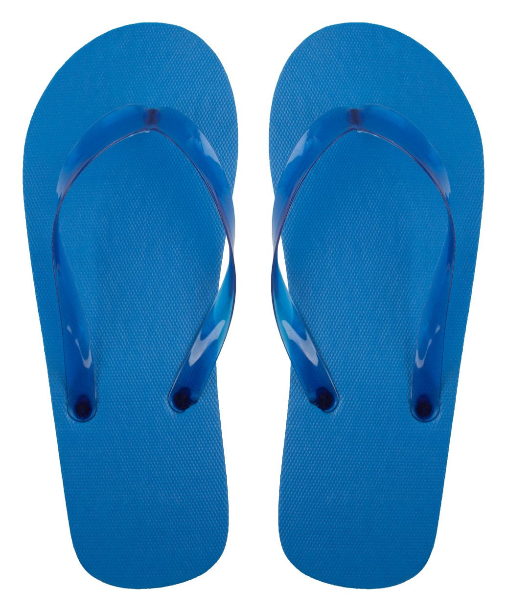 Papuci de plajă din poliester cu bretele transparente din PVC.