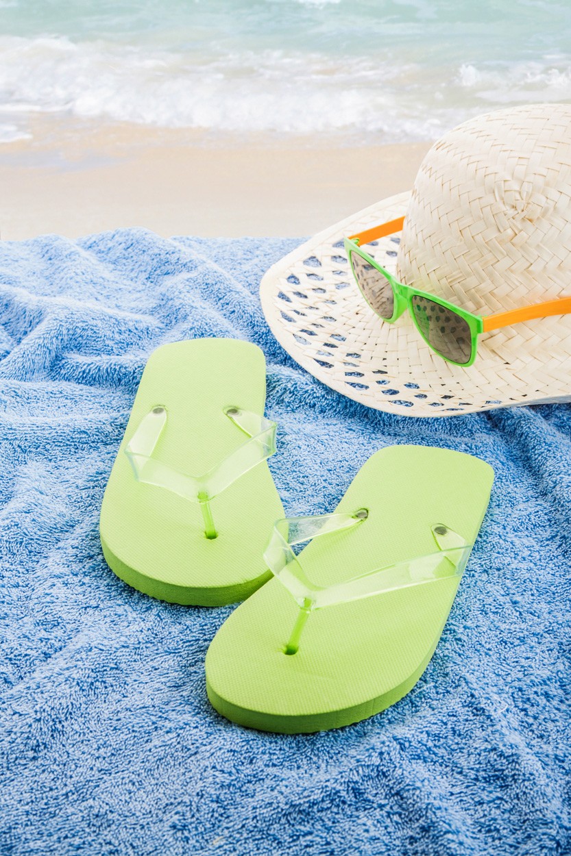 Papuci de plajă din poliester cu bretele transparente din PVC.
