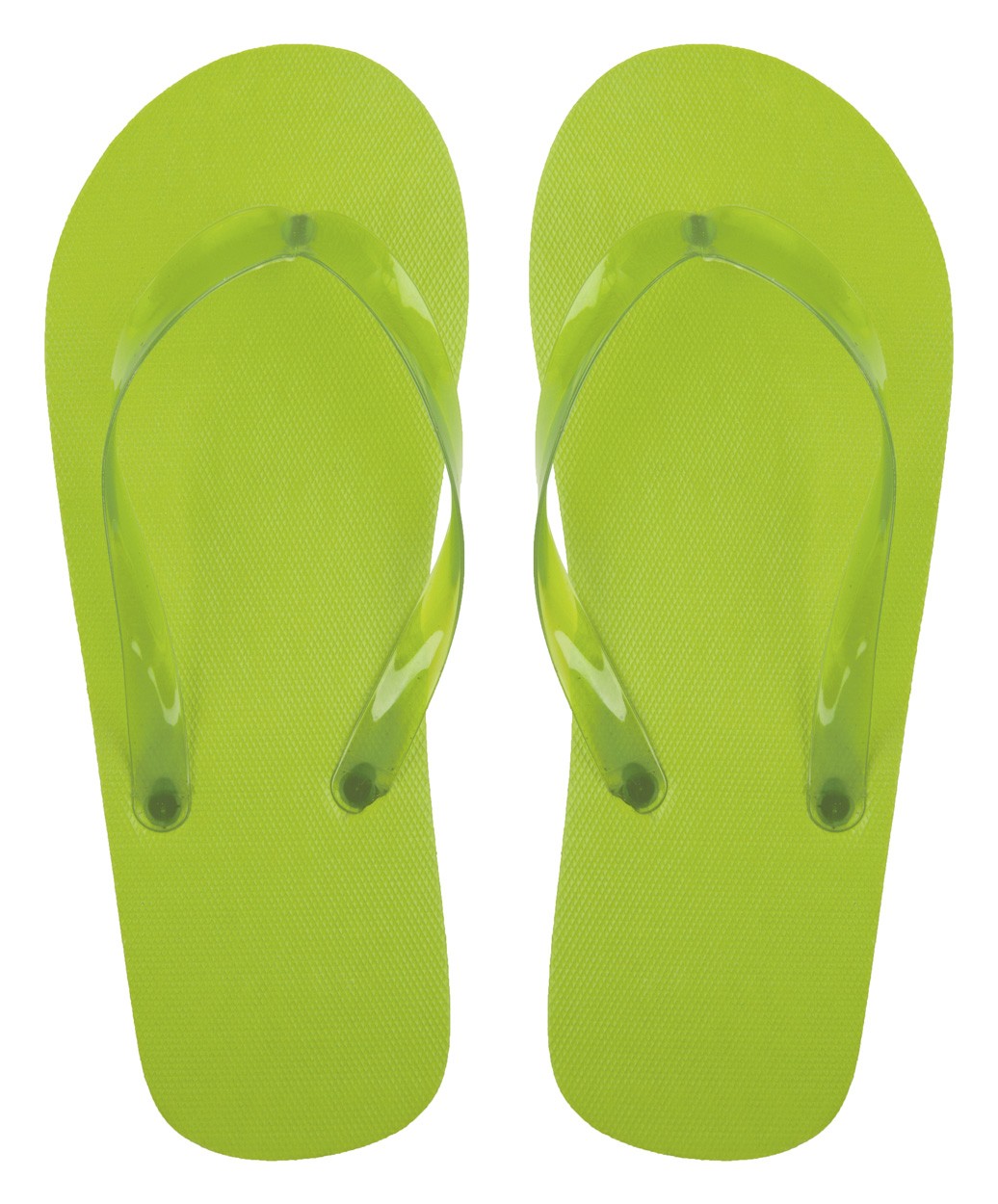 Papuci de plajă din poliester cu bretele transparente din PVC.
