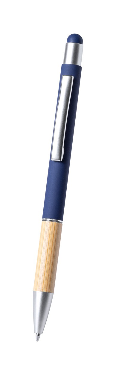 Pix din aluminiu, tactil, cu clips din bambus și finisaj mat. Cu reumplere albastră.