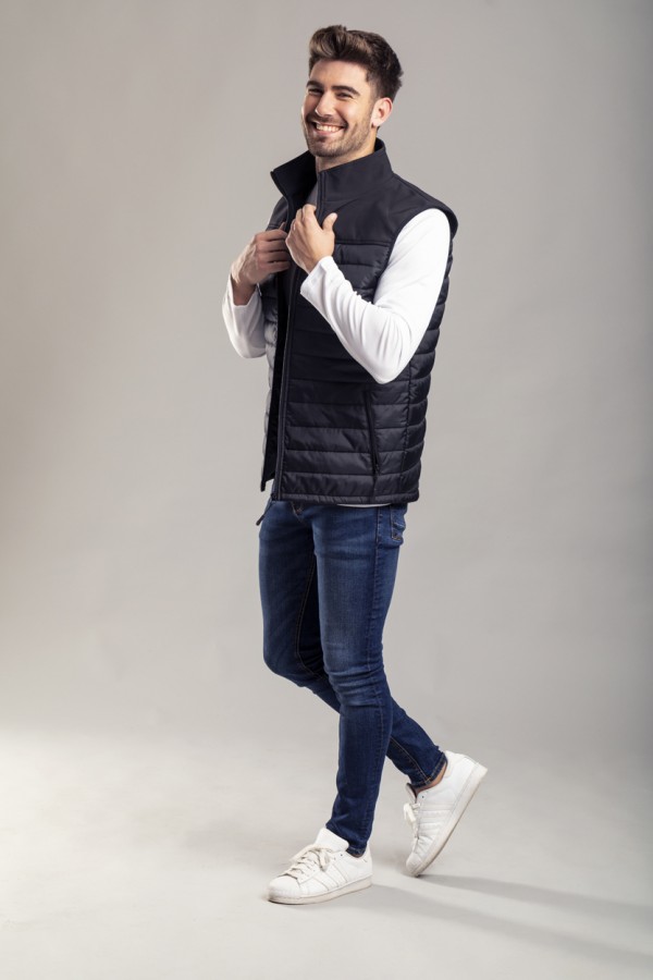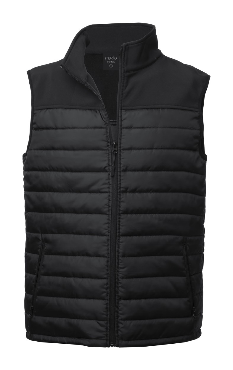 Vestă impermeabilă și respirabilă cu fermoar, din softshell-poliester, cu 2 buzunare laterale.