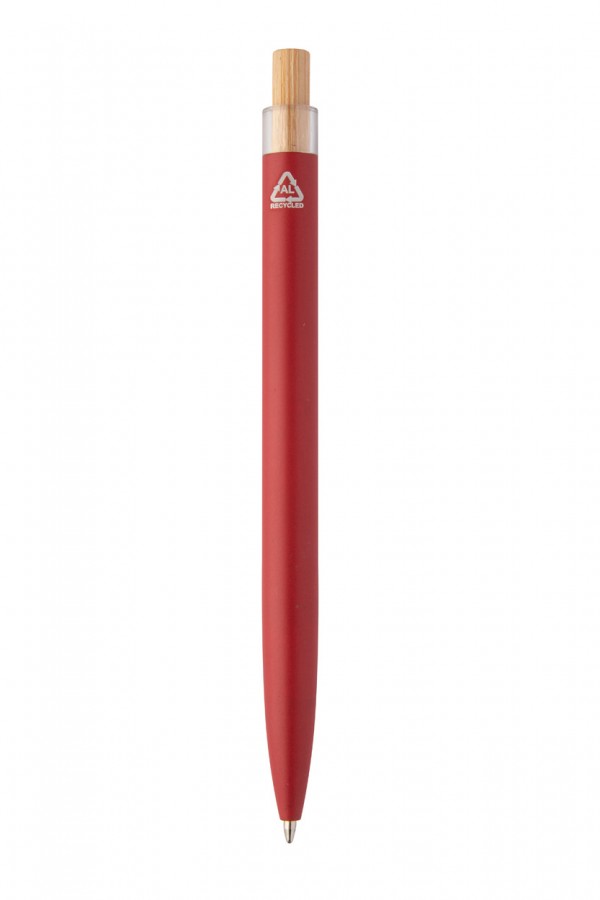 Pix din aluminiu reciclat, cu corp din bambus. Cu mină albastră.