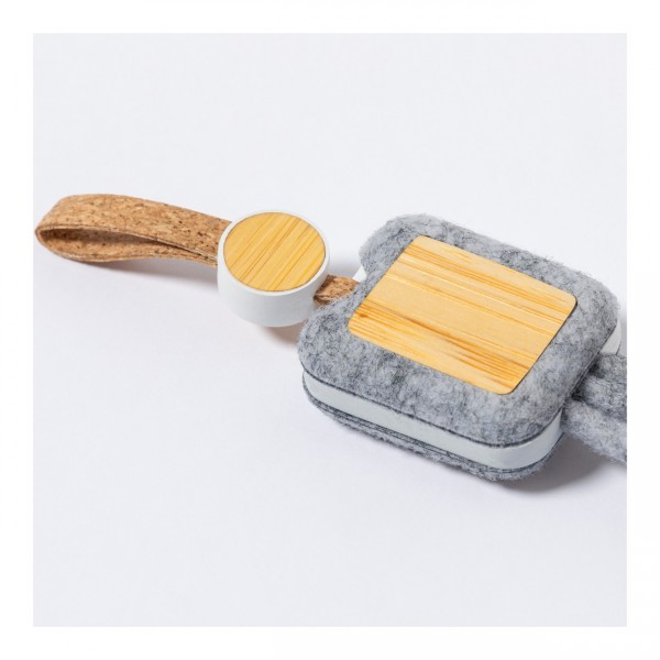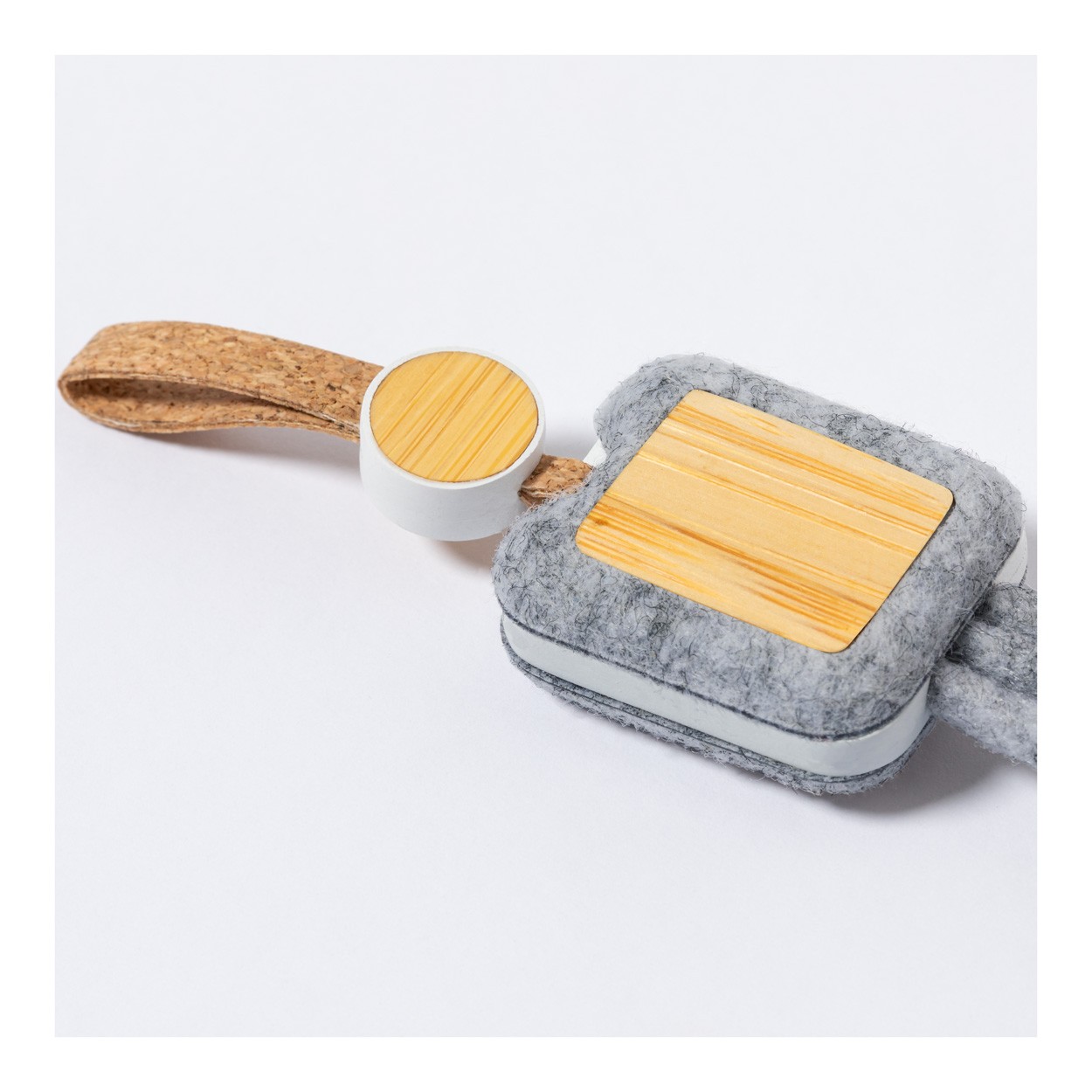 Cablu de încărcare USB, din bambus și fetru RPET, cu curea de transport. Cu conectori micro USB, USB-C și Lightning. Cu intrări USB și USB-C.