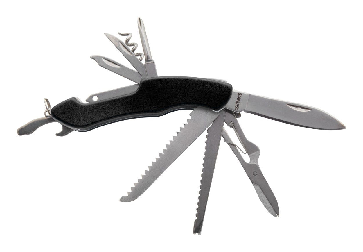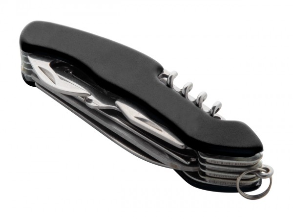 Briceag de buzunar, din oțel inoxidabil cu 12 funcții și mâner din aluminiu.