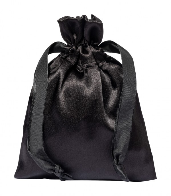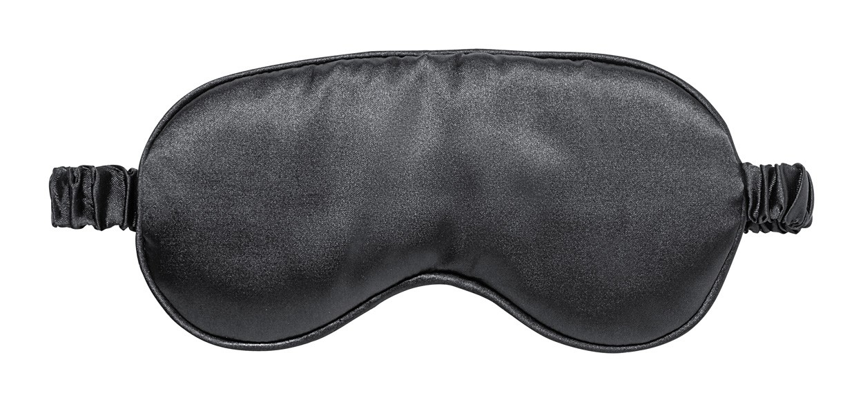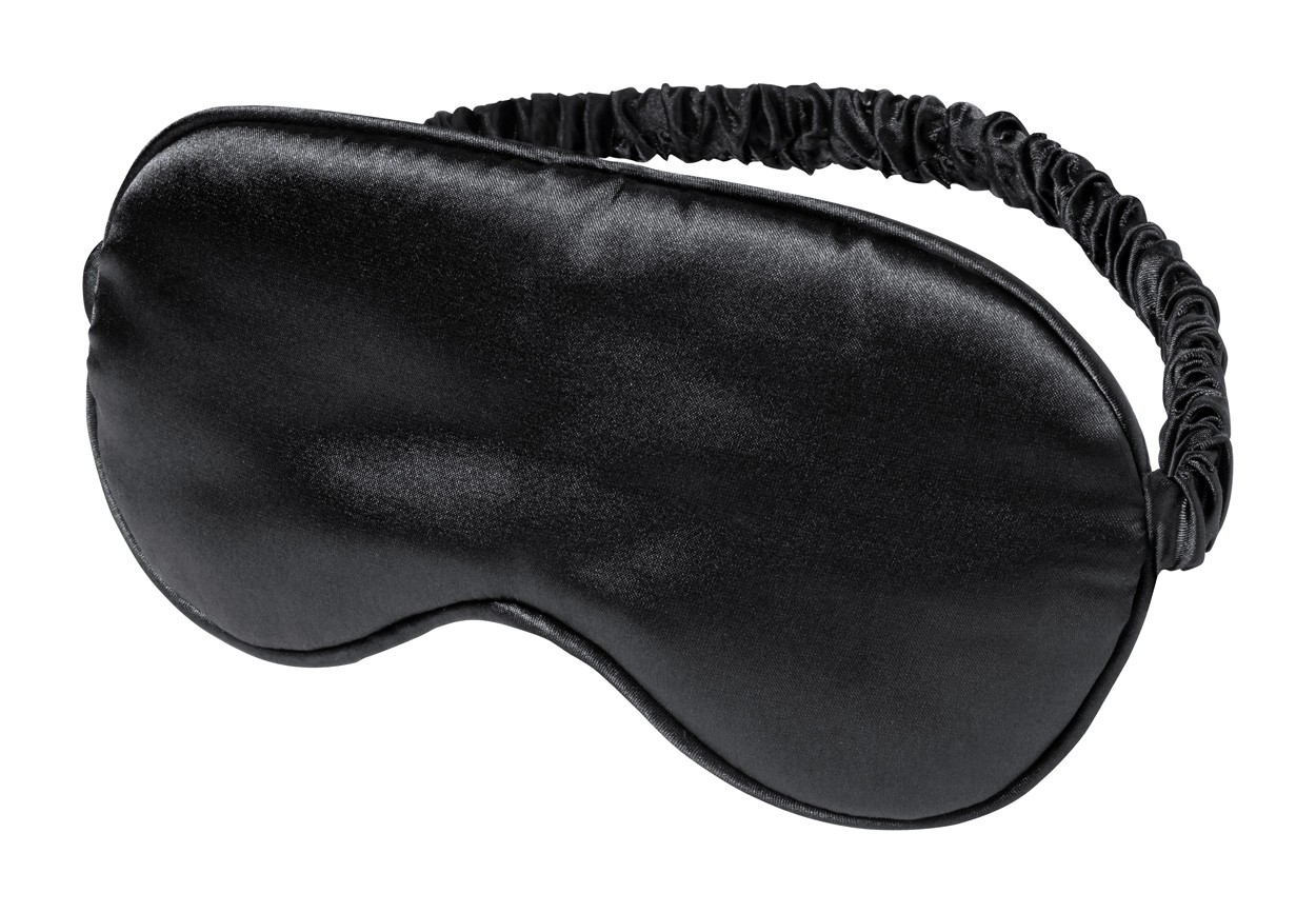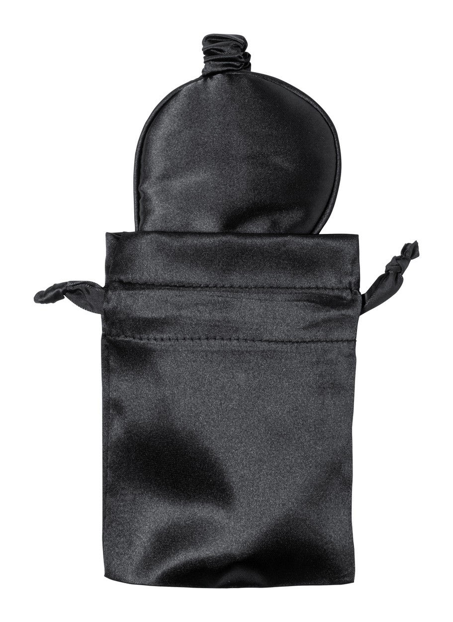 Mască pentru ochi, din satin, cu curea elastică, în husă din satin cu cordon.