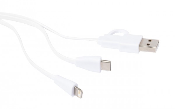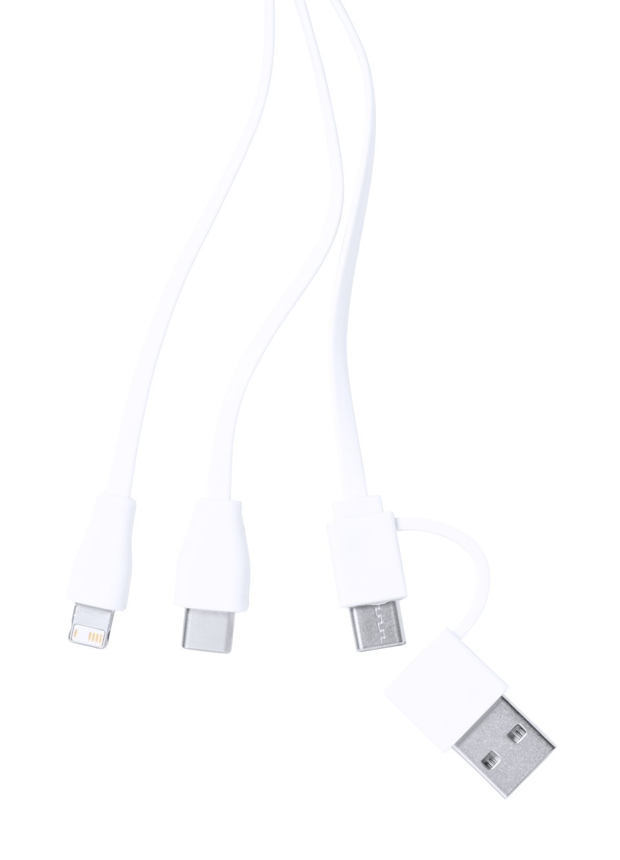 Breloc cu cablu de încărcare USB, din bambus și extract de marmură cu conectori micro USB, USB-C și Lightning. Cu intrări USB și USB-C.