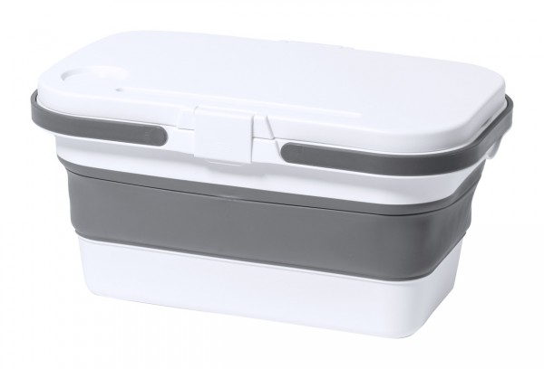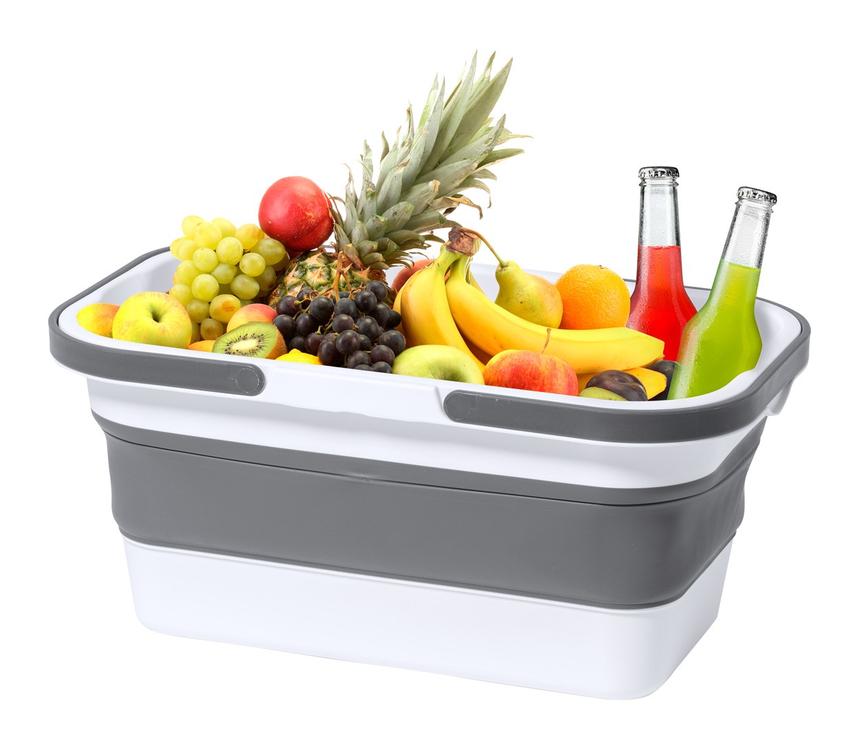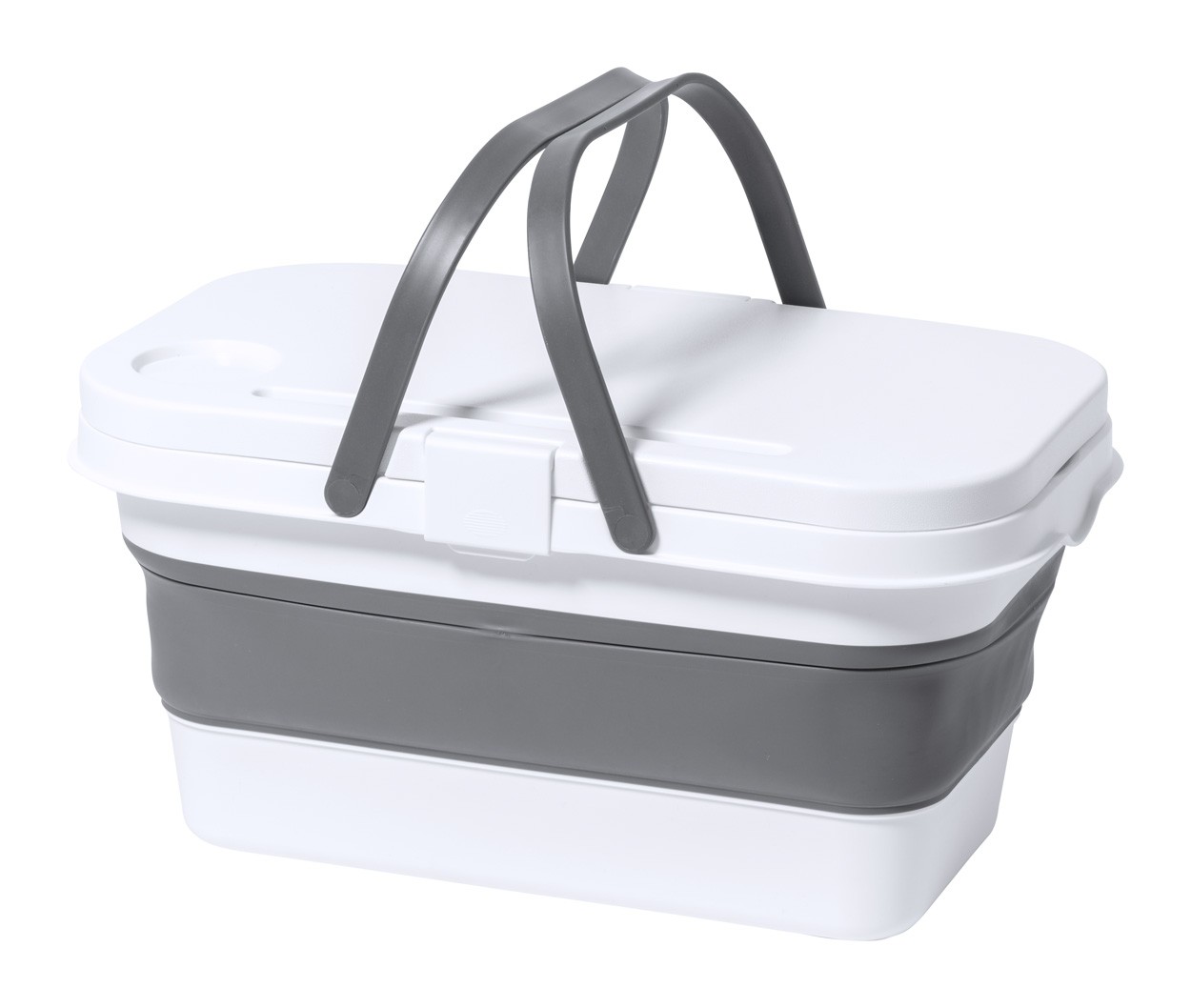 Coș de picnic pliabil, din plastic PP. Cu un capac care poate fi transformat într-o masă cu funcții mobile și suport pentru sticle încorporat.