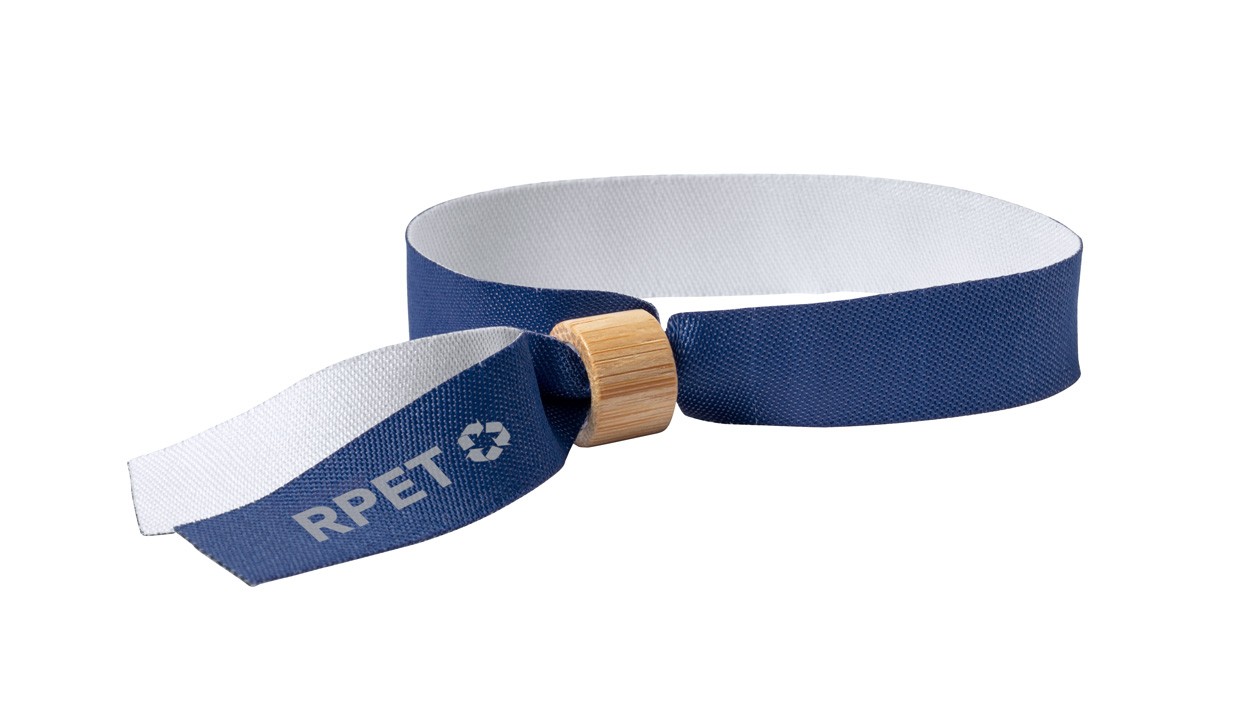 Brățară de festival din poliester RPET cu încuietoare de siguranță din bambus.