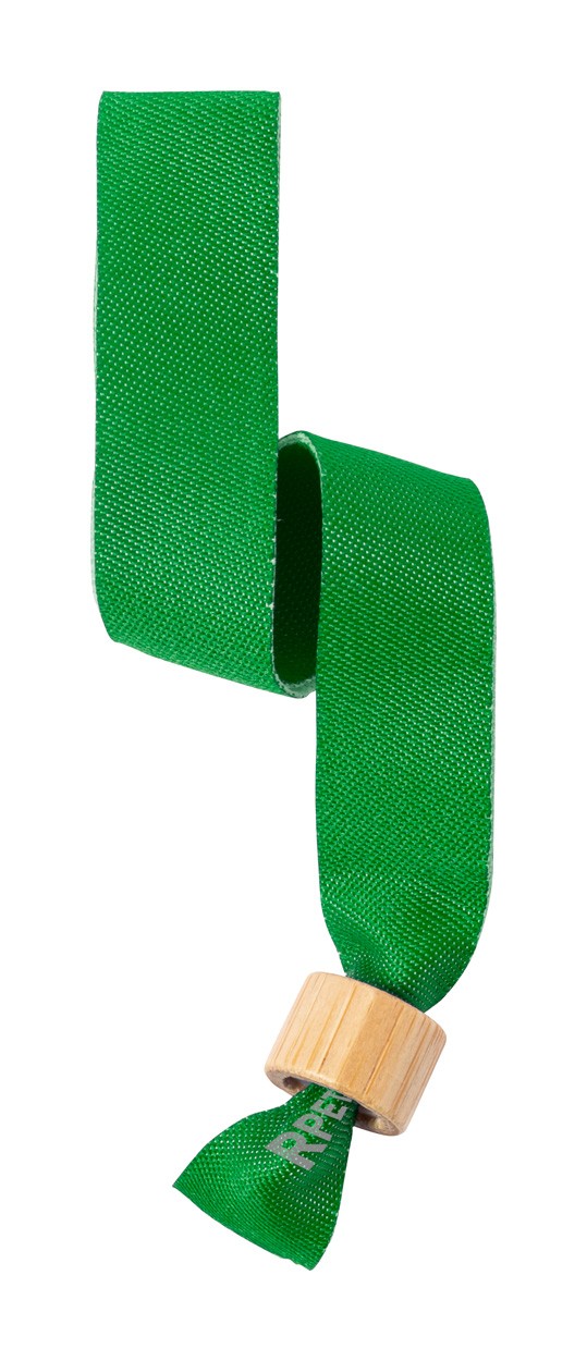 Brățară de festival din poliester RPET cu încuietoare de siguranță din bambus.
