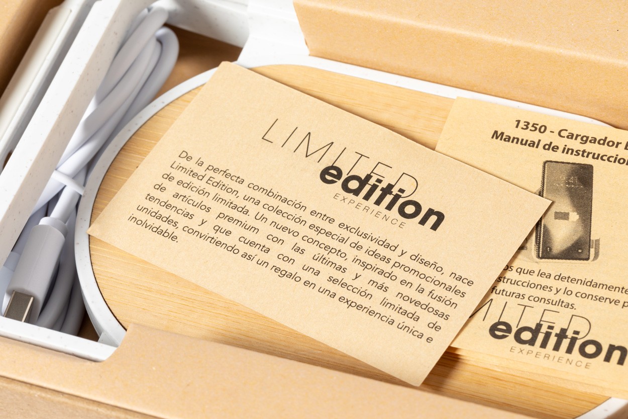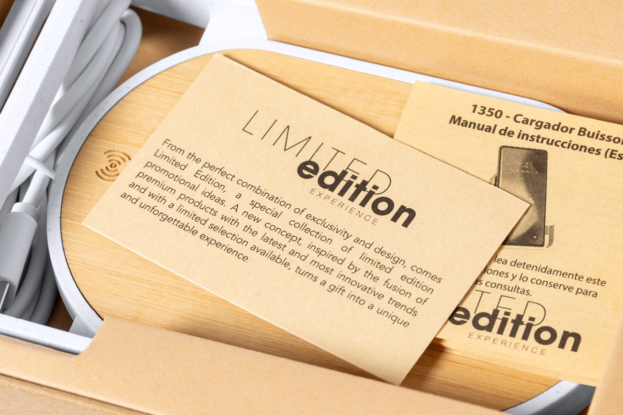 Incărcător wireless (10W), din plastic din bambus si paie de grâu. Inclusiv cablu de încărcare USB-C. Produs Limited Edition.