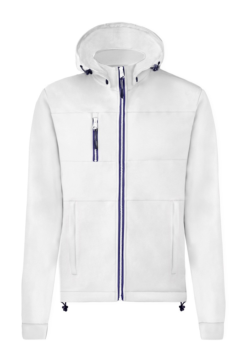Jachetă softshell, rezistentă la vânt și impermeabilă, cu fermoar, cu 2 buzunare laterale, 1 buzunar frontal, guler ridicat și glugă detașabilă. 100% poliester, 300 g/m².