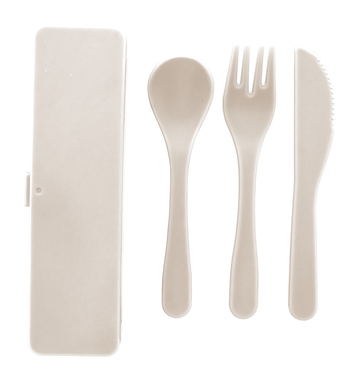 Set de tacâmuri, 3 bucăți, din plastic PP, în cutie de culoare asortată. Include furculiță, cuțit și lingură.