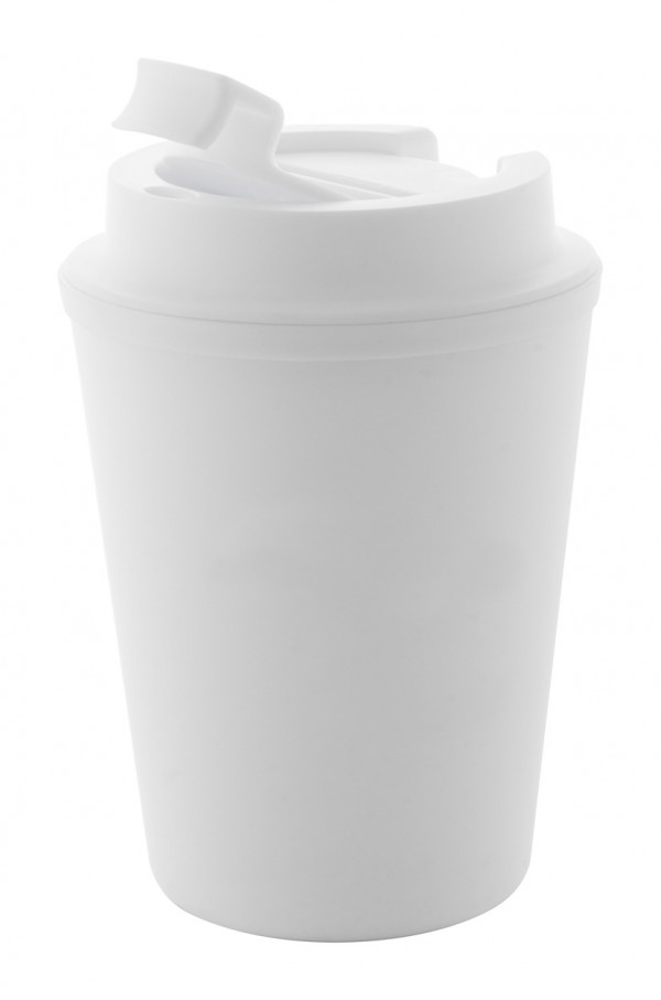 Cană termică cu perete dublu, din plastic PP reciclat, cu capac de băut. 300 ml.